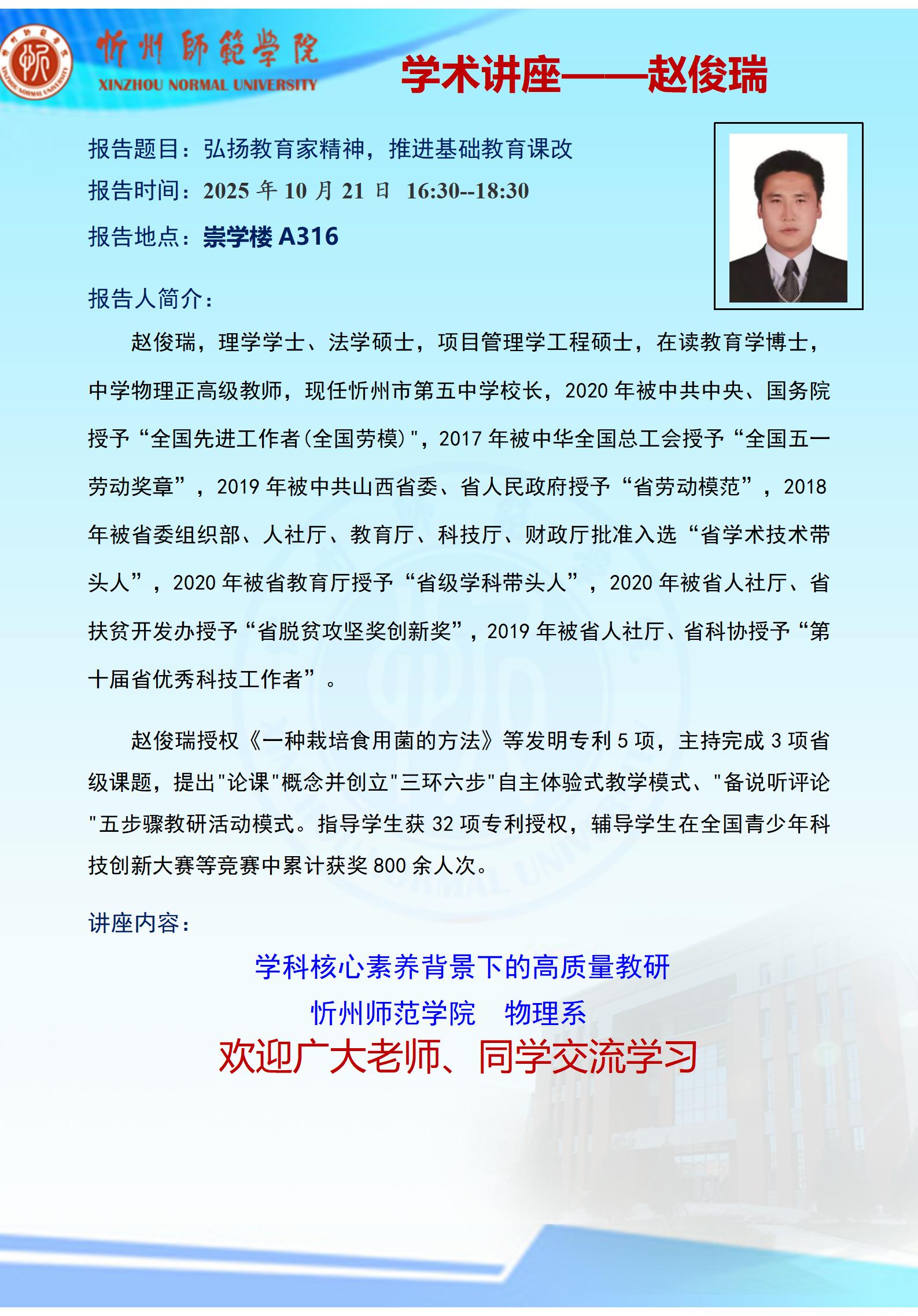 【讲座预告】弘扬教育家精神,推进基础教育课改
