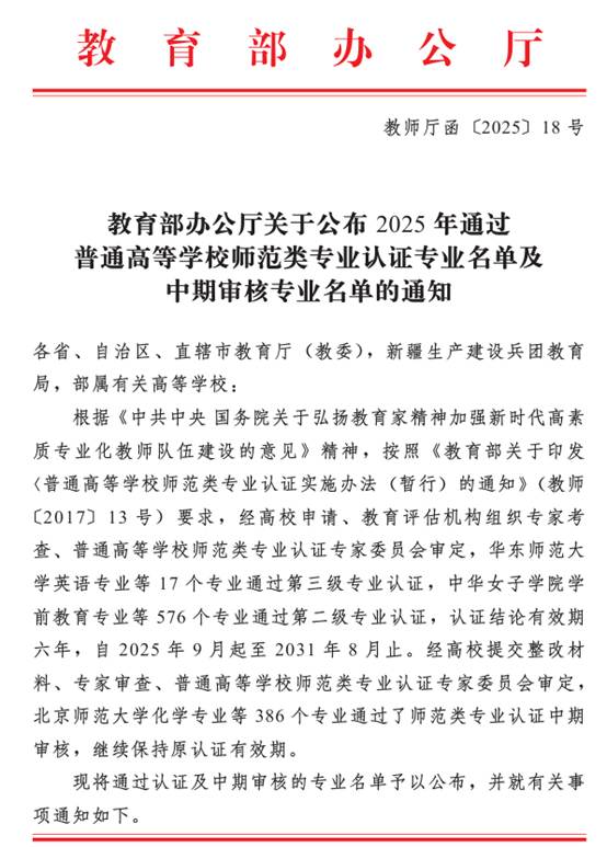 物理系物理学专业与科学教育专业在师范类专业认证工作中相继取得关键成果。其中,物理学专业正式通过普通高等学校师范类专业第二级认证;科学教育专业则顺利完成师范类专业第二级认证专家入校考查,专业建设成效获专家组高度认可。