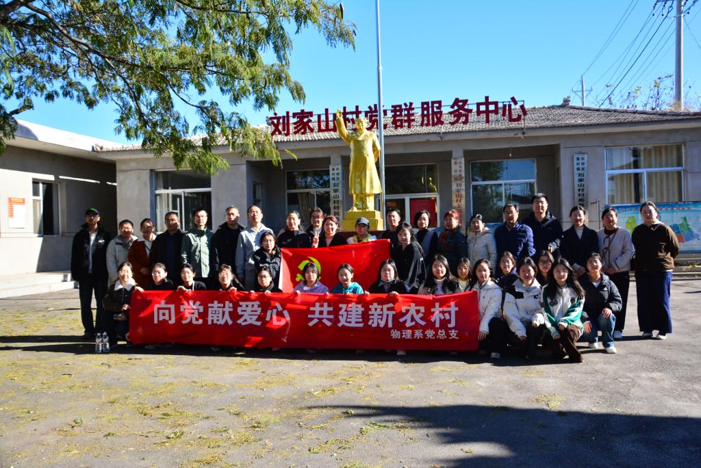 2025年11月1日上午,物理系组织50名教职工党员、学生党员及学生干部走进刘家山村,与该村党支部联合开展“向党献爱心,共建新农村”主题党日活动。