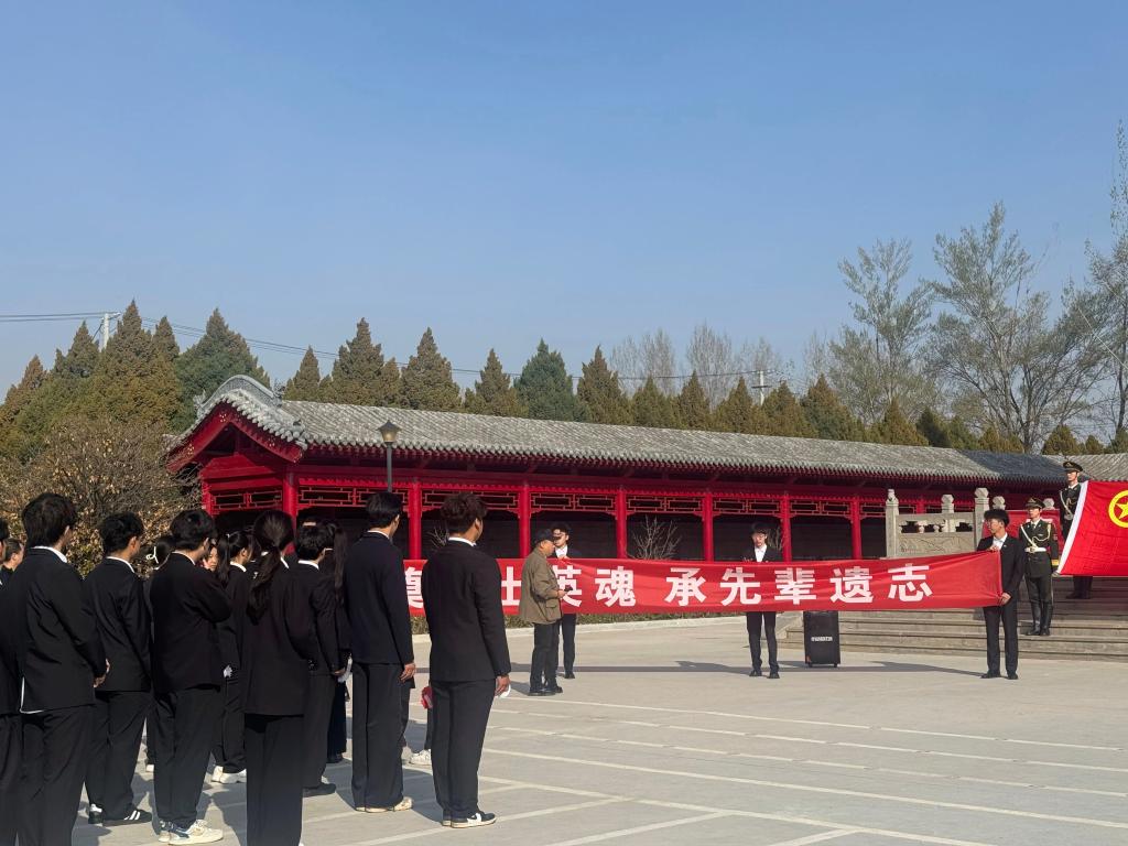 “革命烈士永垂不朽”,纪念碑高耸入云,庄严肃穆。同学们整齐列队,面向纪念碑肃立默哀,向为民族解放事业英勇献身的革命先烈致以最崇高的敬意。同学们在纪念碑前重温入团誓词,铿锵有力的誓言回荡在广场,彰显着新时代青年传承红色基因、勇担时代使命的坚定决心。大家依次敬献鲜花,深深鞠躬,用最庄重的仪式,缅怀先烈、告慰英魂,让“不忘历史、缅怀先烈、珍爱和平、开创未来”的信念深植心底。